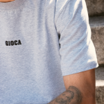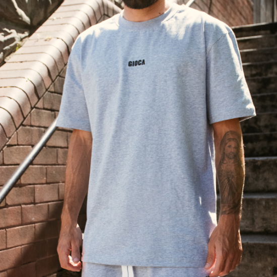 Cotton crew neck tee with a relaxed fit. Hand stitched Gioca logo.