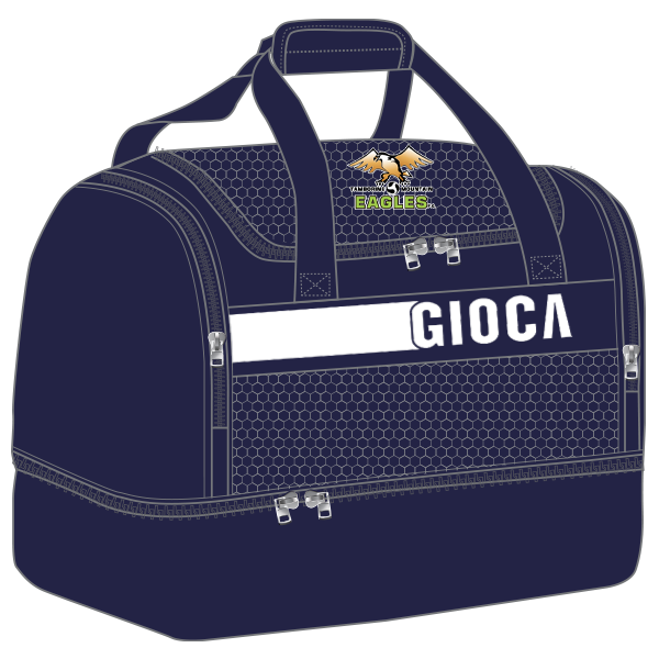 TAMBORINE FC Navy GIOCA Duffle Bag. The GIOCA Duffle Bag is equipped with a large upper compartment, lower boot / wet area compartment and 2 side pockets. Ideal for any footballer.
