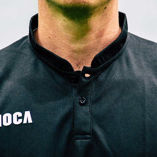 Gioca Collarless Polo in Black with Westside Panthers Logo Applied